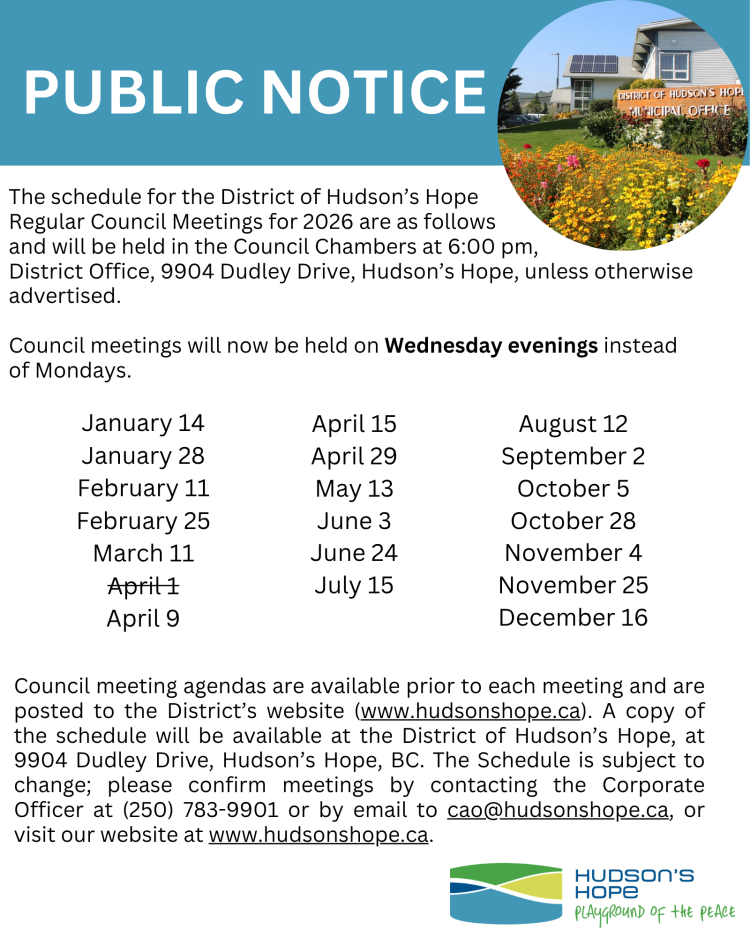 Updated Council Meeting Schedule